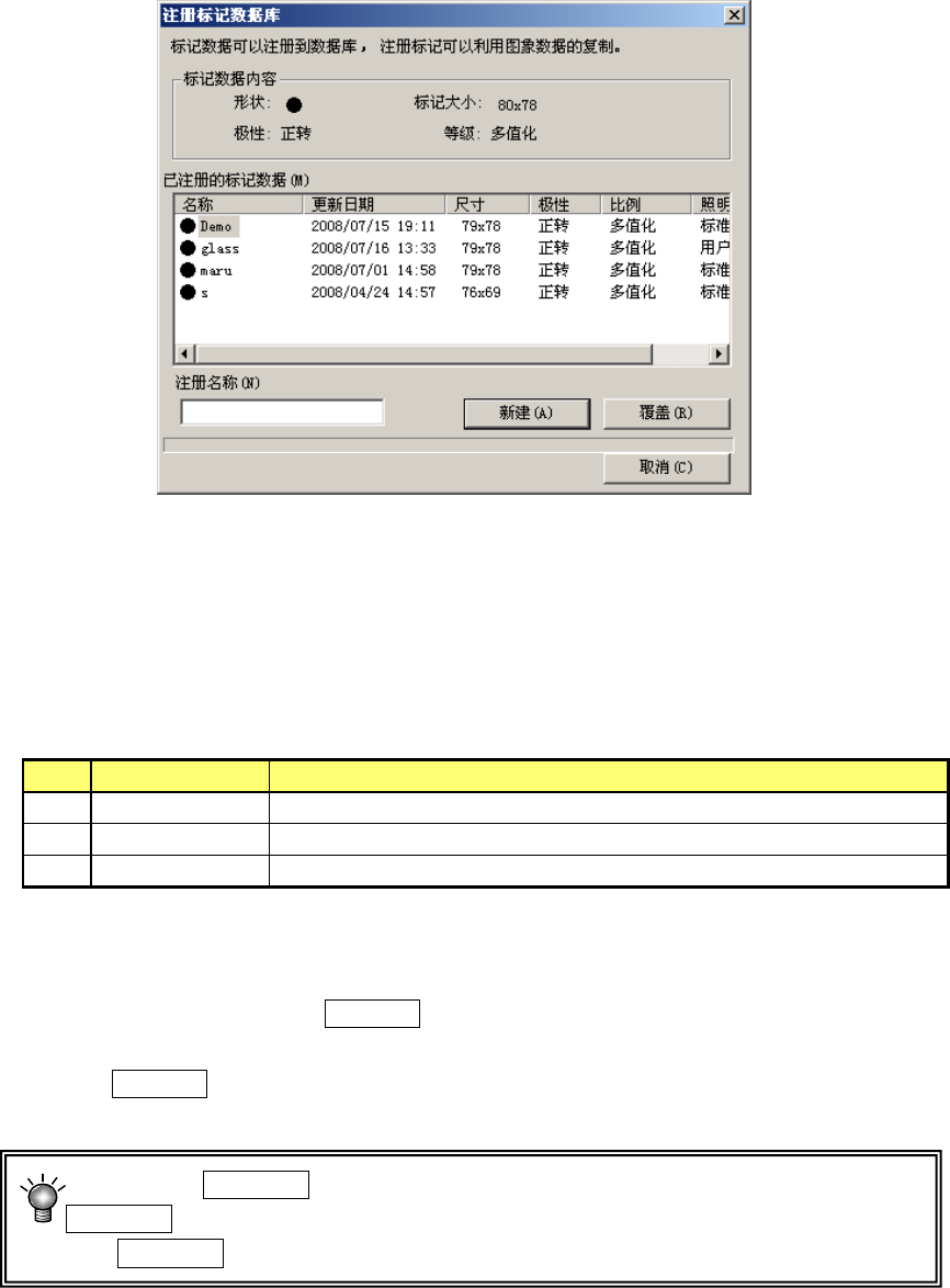 要把示教数据注册到标记数据库时,请输入注册名称,然后按下<新建>按钮。