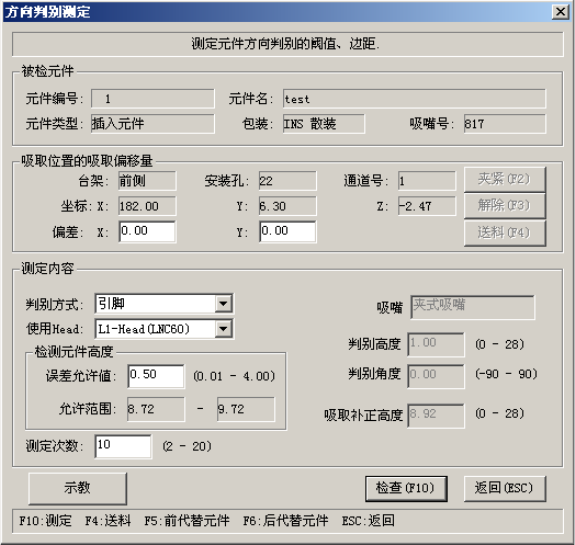 从菜单栏中选择「机器操作」/「测量」/「方向判别」,则显示如下画面。