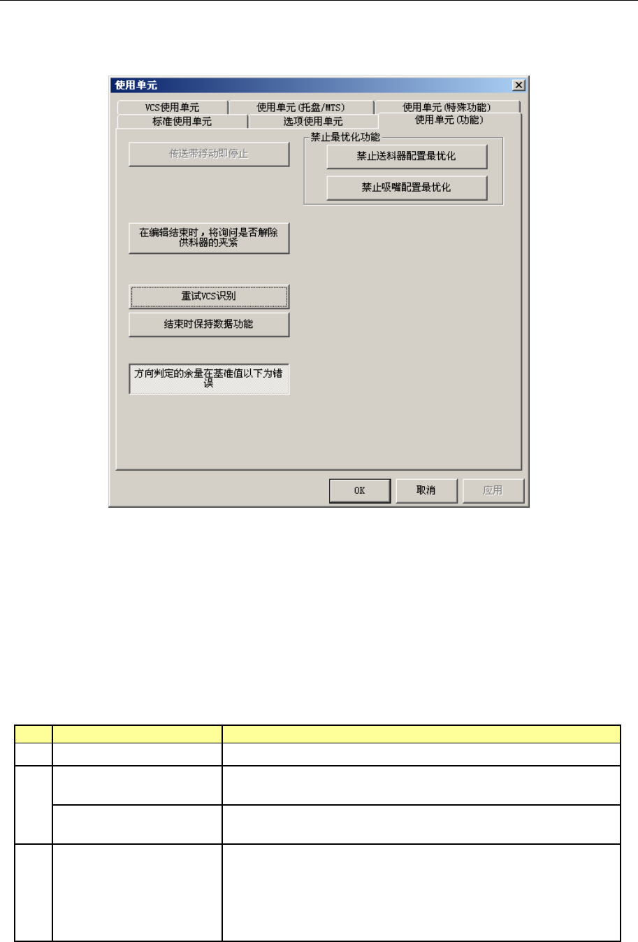选择[使用单元(功能)]选项卡后,显示如下“使用单元(功能)设置”画面。