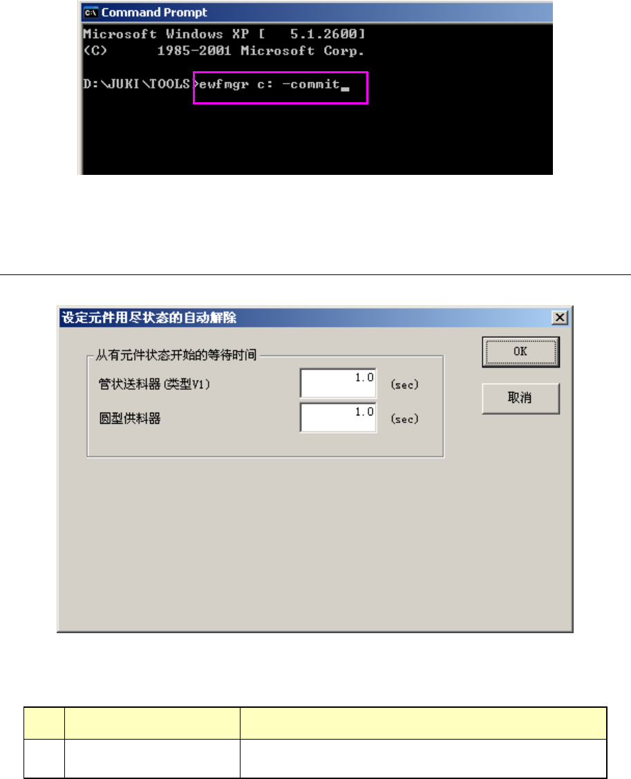 第 2 部 功能详解篇 第 6 章 机器设置 6- 42 (5) 设置完成后 ,请单击 [ 确定 ] 。 (6) 打开命令 提示符,输入 以下命令后 ,重新启动贴 片机。 6-5- 16 设定元件用尽状态的自动解除 图 6-5- 15 -1 设定自动解除元件用 尽状态 的对话框 1 ) 设定项目 ( 各设定值推荐使用默认设定值 ) No. 项目 设定内容 1 从有元件状态开始的等待 时间 设定从元件有无传感器变 为「有」状态,直 至元件…