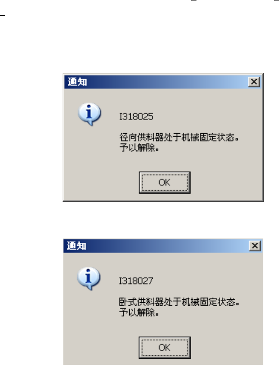 在夹紧状态下关闭供料器控制时,会显示解除夹紧的提示信息,在按 OK 按钮、解除夹紧后