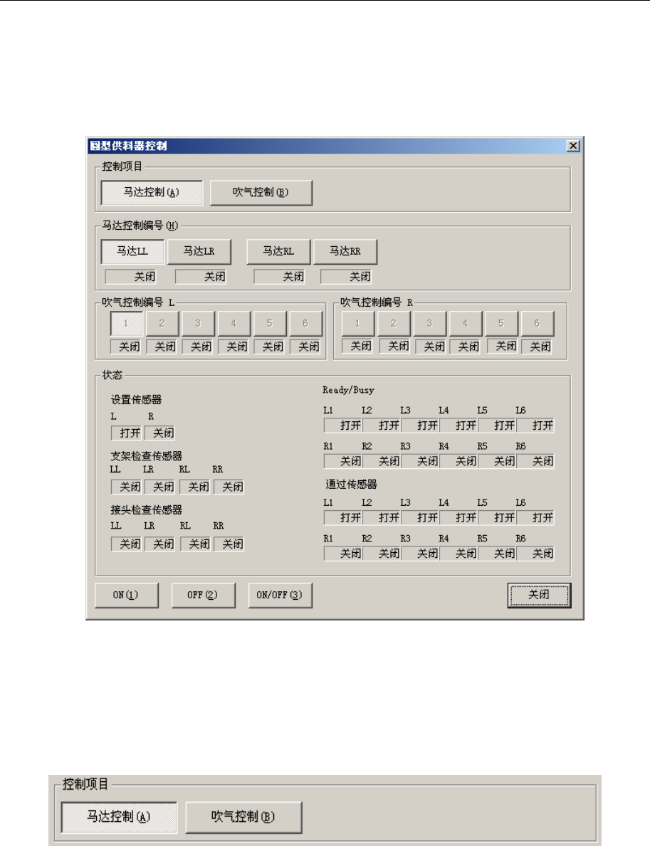 ・勾选了控制项目的“马达控制”时,选择<ON(O)>按钮、<OFF(F)>按钮、<ON/OFF(/)>