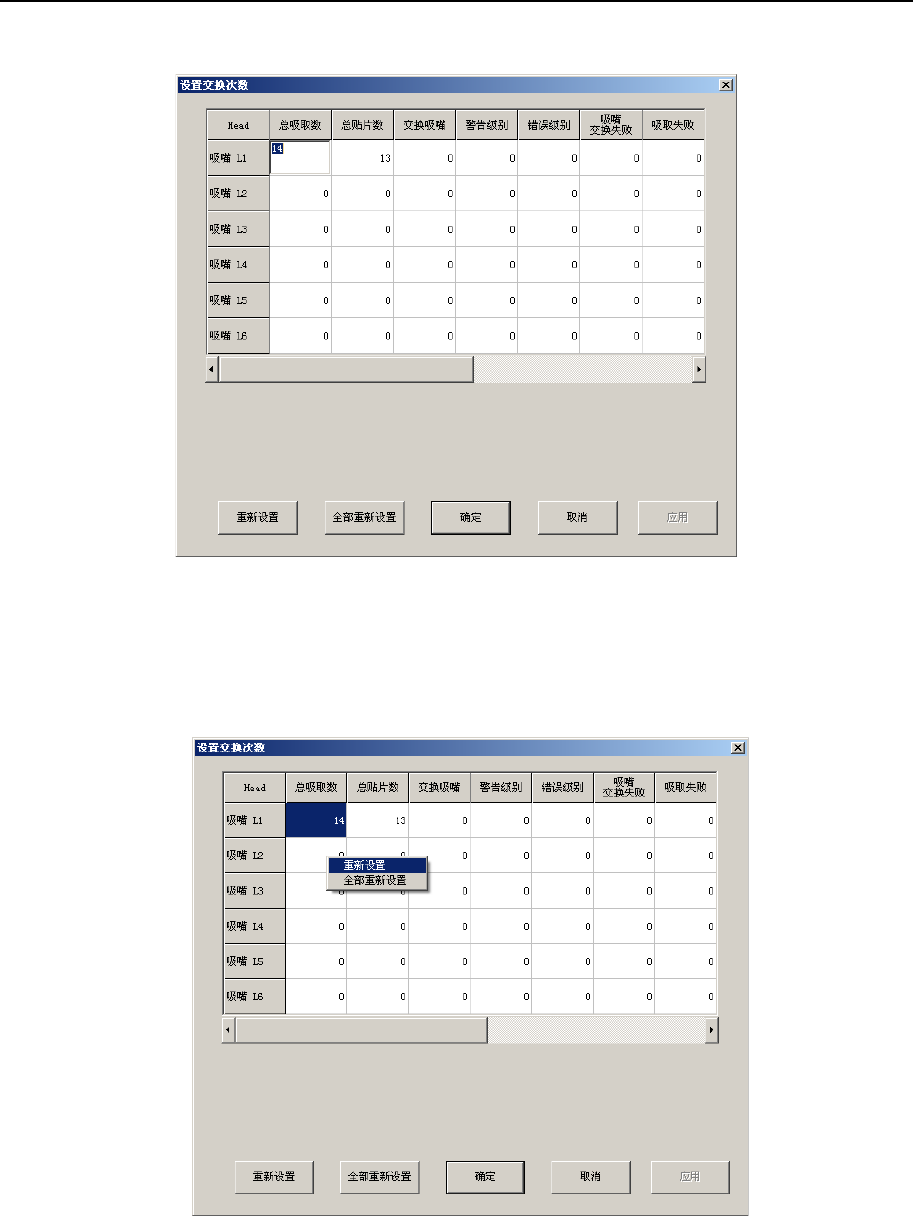 更换Head吸嘴时,将更换的Head吸嘴的更换次数设置为“0”,则可进行初始化。