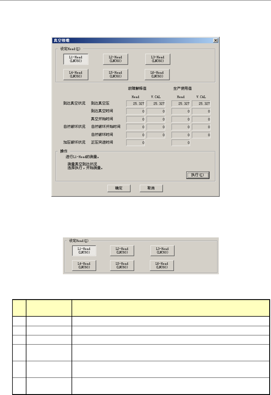① 设定Head将移动到真空校准上,测量3次真空到达状况。