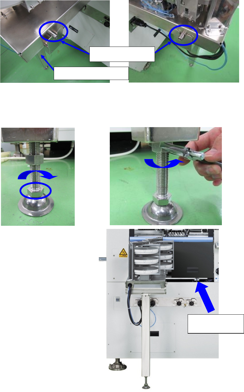 第 2 部 功能详解篇 第 10 章 选购项配件的操作 10 - 10 5) 安装圆型供料器 支撑组。 将 圆型供料器 支撑组 (圆型供料器支 撑底盘) 安装到支撑底盘 引导销部 位上。 6 )调整调节脚 顺时针旋转调整 脚下部的 螺母,使 圆型供料器的底盘面( 底盘护罩面) 与 圆型供料器支撑 底盘面贴紧。 7 ) 将调整脚下部 的螺母顺时针 旋转 半圈~ 1 圈左 右,之后逆 时针旋转上部 螺母,拧紧, 使调整脚 固定 。 圆型供料…