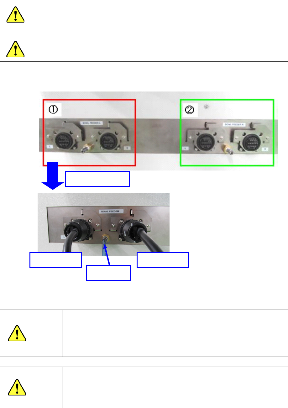 ① 安装在左侧的圆型供料器,要在 BOWL_FEEDER(圆型供料器)左侧插入连接线、气管。