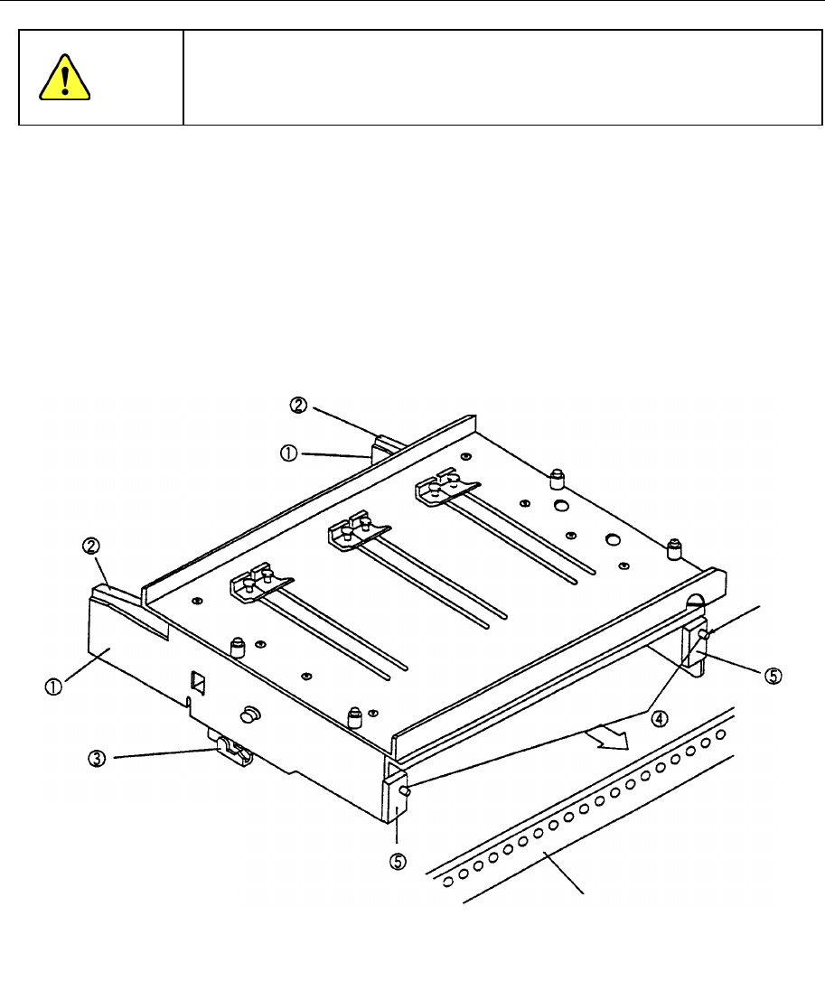 (3)在销④插入且前板⑤顶住固定板的位置上,放开边板①和锁紧杆②,用锁紧支架③固定。