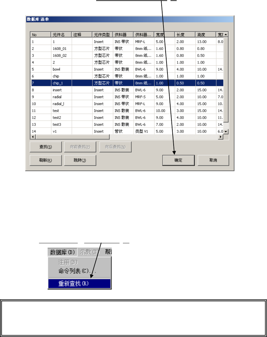 调出,注册到生产程序的元件数据中。每执行一次“重新查找”,即对贴
