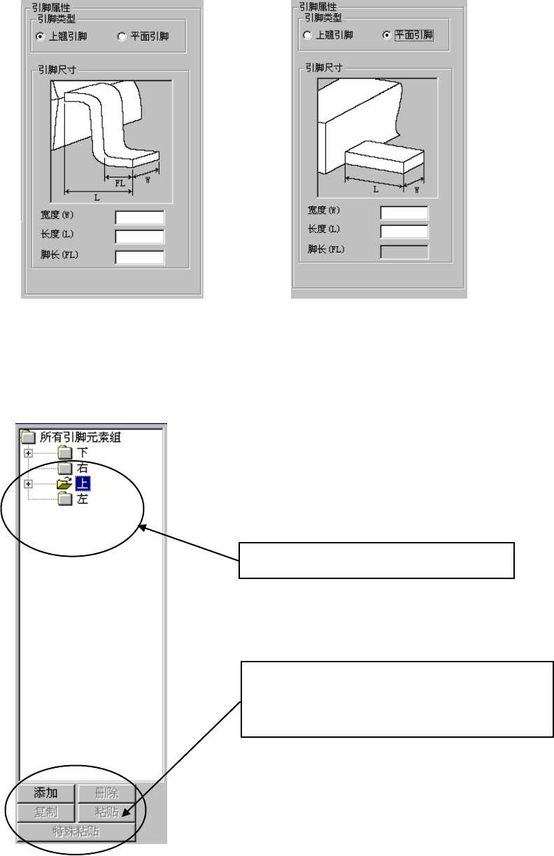 图 12-4-3-5 引脚特征(鸥翼形引脚) 图 12-4-3-6 引脚特征(平板引脚)