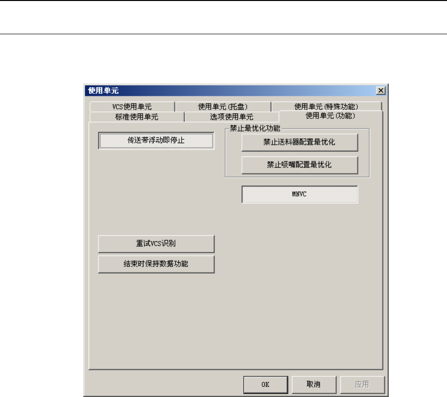 选择机器设置的使用单元,单击使用单元(功能)选项卡后,显示下图。MNVC 按钮为凹陷的,