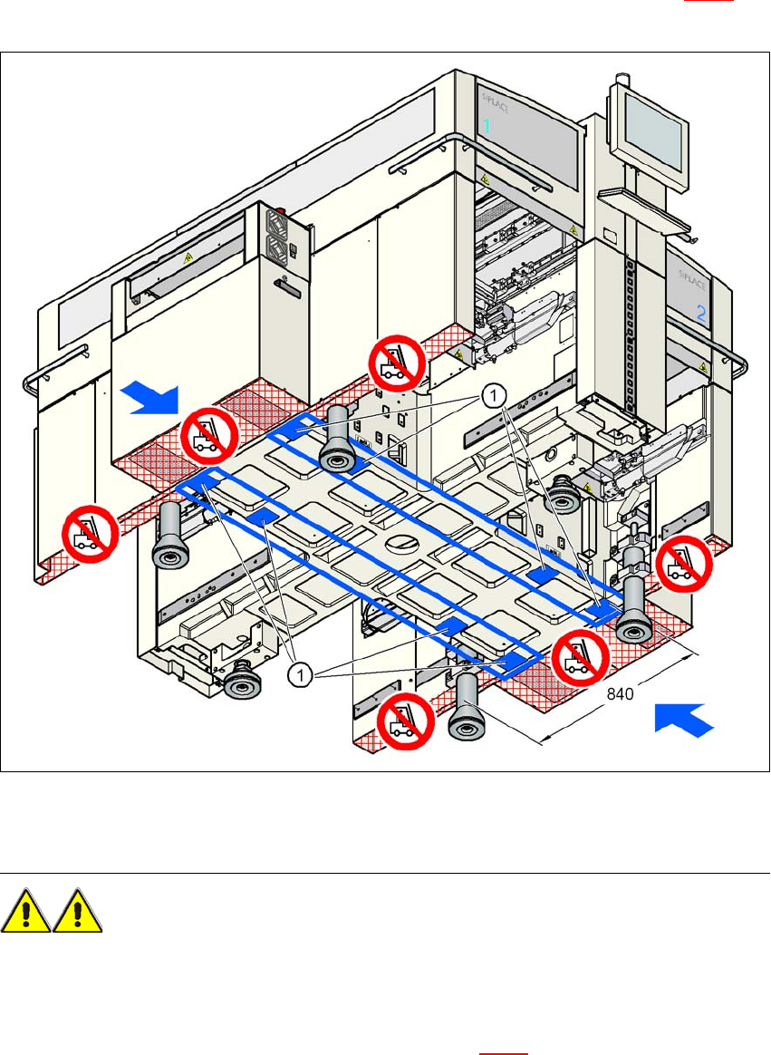 4 Aufstellen und Inbetriebnahme Betriebsanleitung SIPLACE D3 4.3 Den Automaten aufstellen Ab Softwareversion SR.605.xx Ausgabe 07/2008 DE 198 dass der Automat an de n Seitenteilen des M aschinenrahmens a ngehoben wird. E…