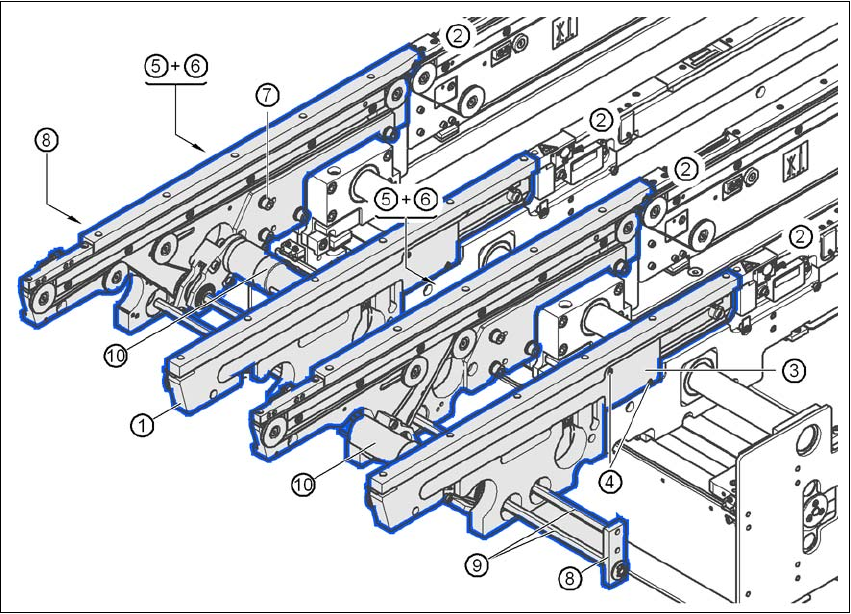 auf jene Transportwange zeigt, an der die Antriebseinheit (Pos. 10 in Abb. 4.3 - 7