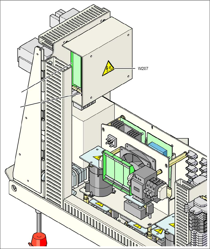 2.2.4.3 Warnschild W207 an der Einschaltstrombegrenzung der Stromversorgung