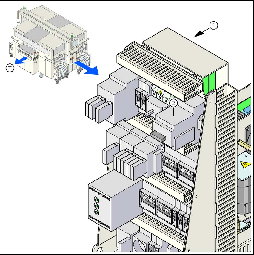 Hauptschalter Q1, Klemmen T1, T2, T3 0 V~