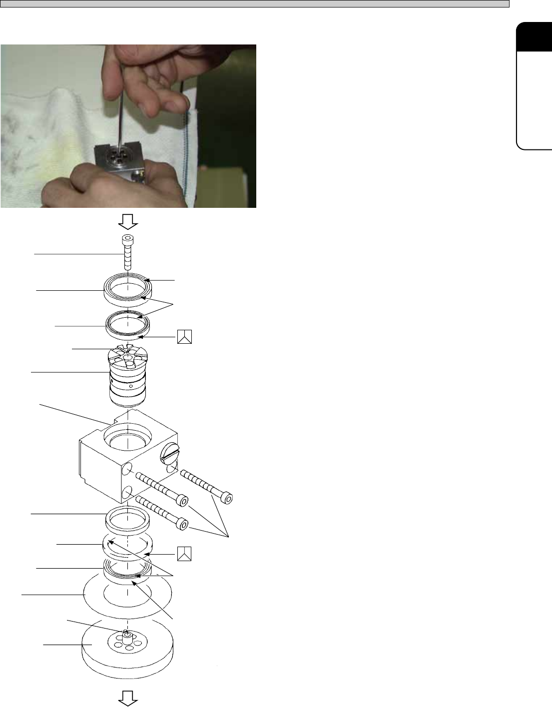 Page 1-63 REGULAR MAINTENANCE 1 Check Every 1000 Hours (Once T wo Months) 2 . Cleaning and checking (changing) the transfer head 1 . Remove the reflector . ∗ Loosen the bolt (A) on the top of holder with a hexagonal wren…