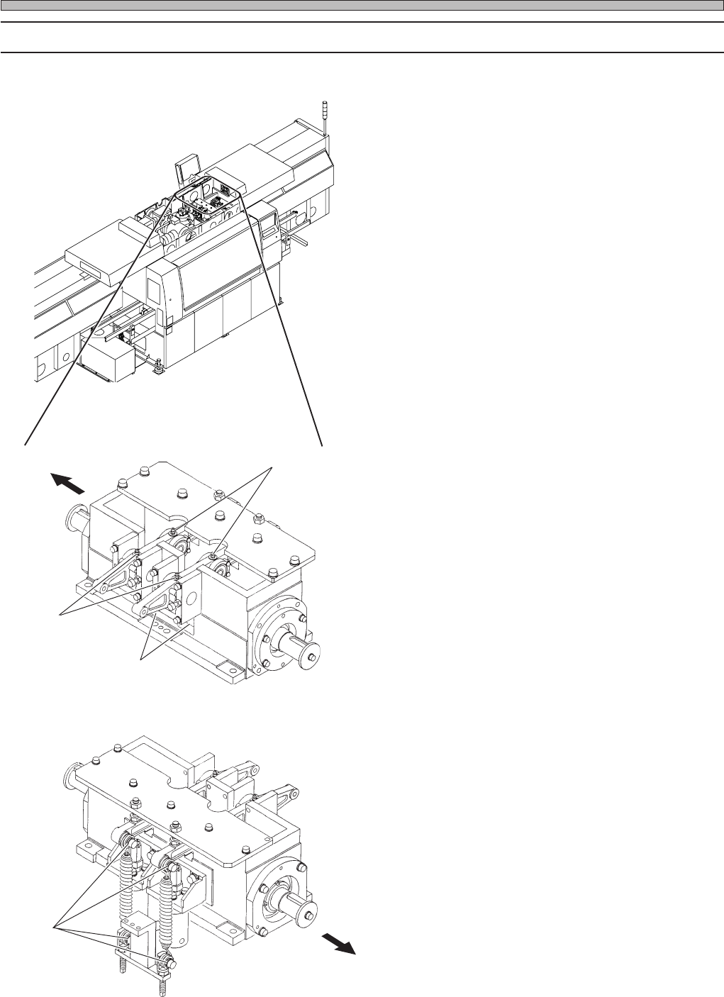 Page 1-71 REGULAR MAINTENANCE 1 Check Every 1000 Hours (Once T wo Months) 1-6-3 Cleaning and Greasing the Cam Box 2 This unit has two cams which carry out tape feeding and adhesive tape (option) feeding. 1 . Remove upper…