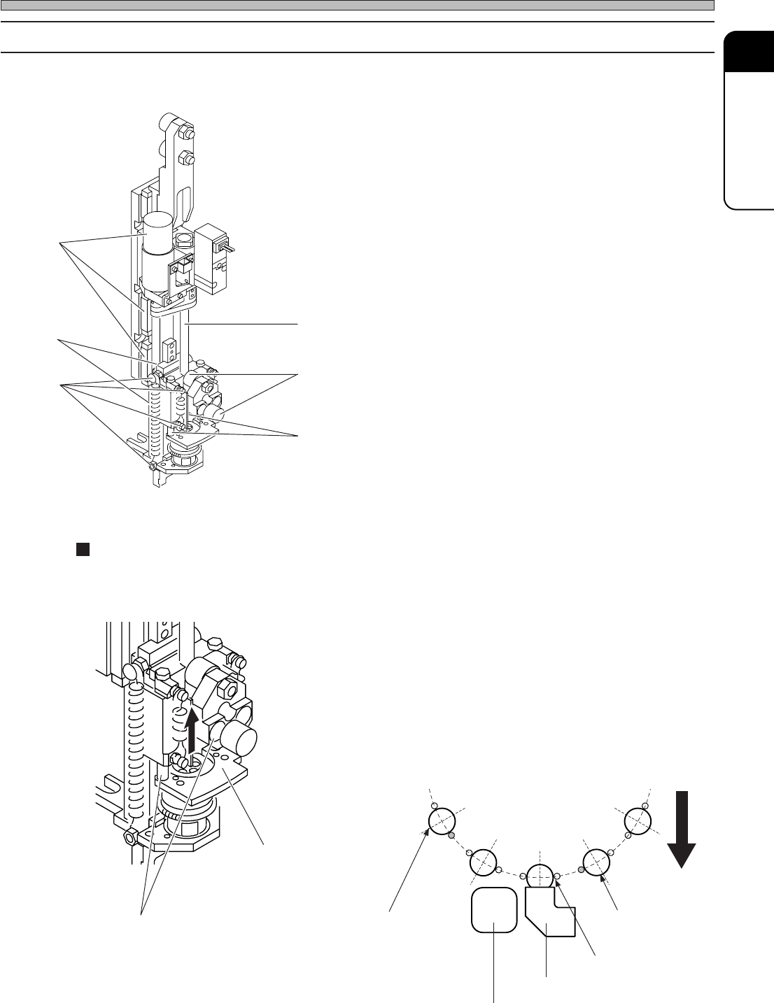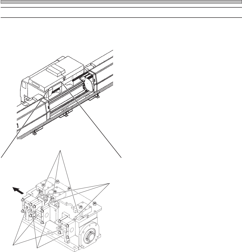 Page 1-72 Rear side 1. 3. 2. 4. Check Every 1000 Hours (Once T wo Months) 1-6-4 Cleaning and Greasing the Cam Box 3 This unit has three cams which drive the take-up, mount, and cutter . Clean the cam follower , lever ful…