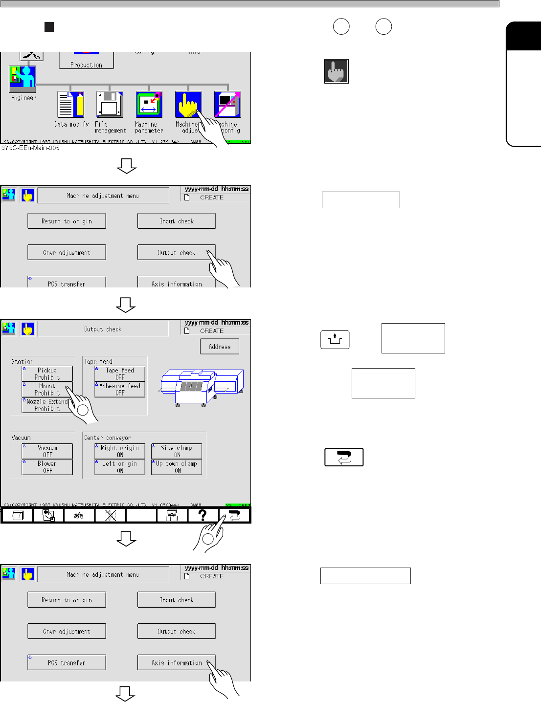 • The “Machine adjustment menu” screen