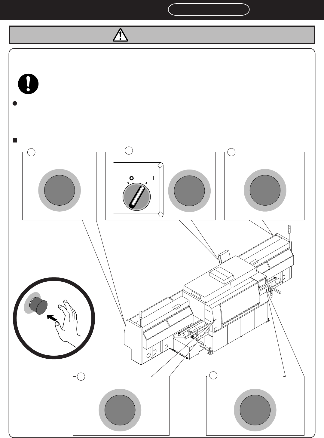 Page 14 SAFETY PRECAUTIONS Be sure to observe 3Y3C-E-MMD00-A03-02 DANGER L01EB W A TCH YOUR HANDS. Caught hands between right feeder and left feeder tables will have serious injury . Do not put your hands between right f…