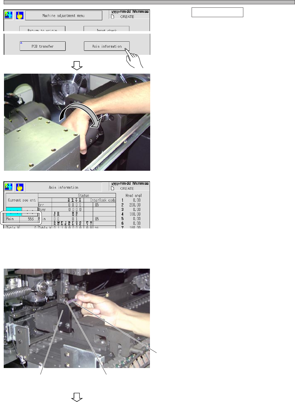 Page 1-114 Changing the Consumable Parts Every 1500 to 6000 Hours 12 . Press Axis information . • The “Axis information” screen appears. 13 . T urn the coupling of main motor and set “Main” on the “axis information” scre…