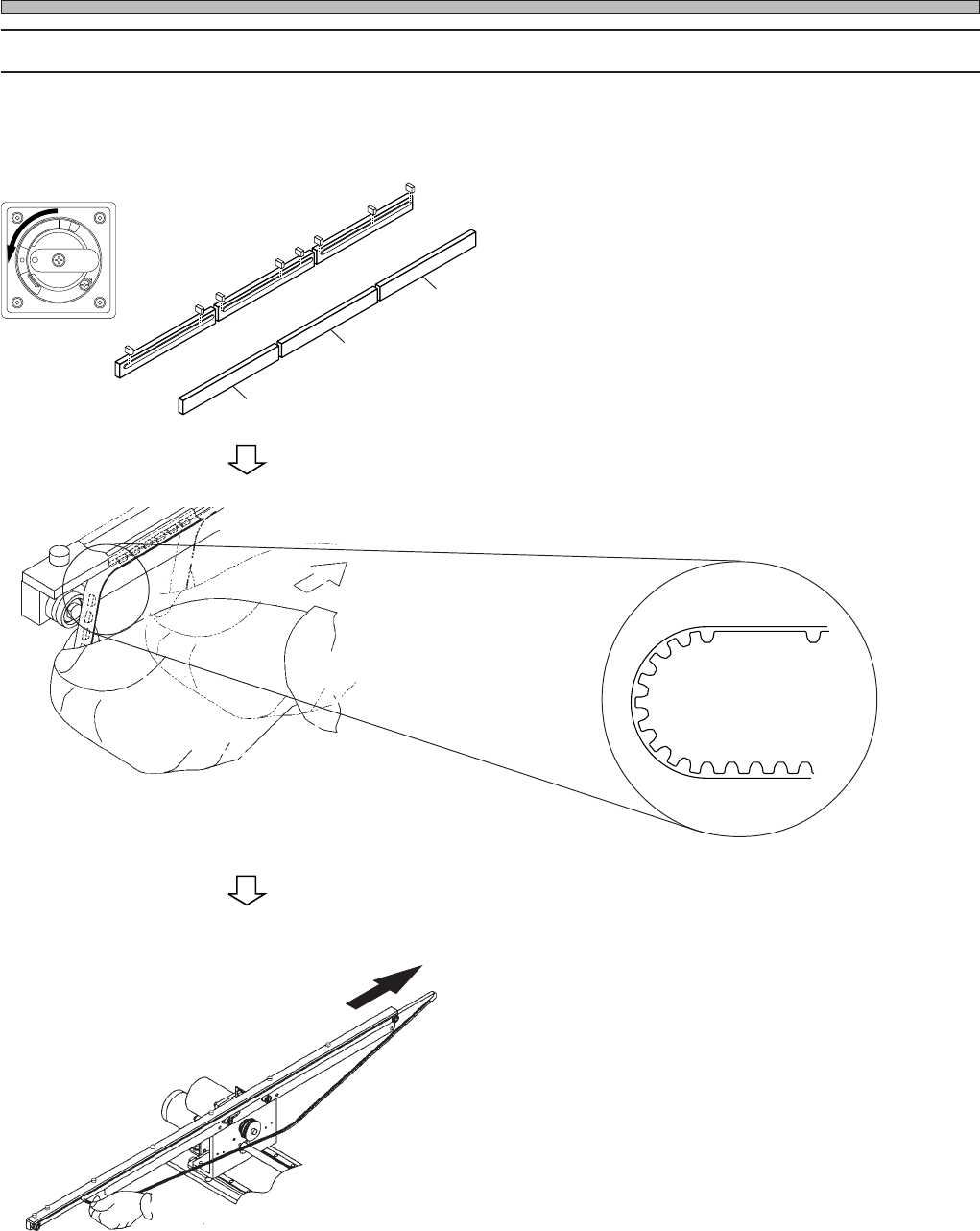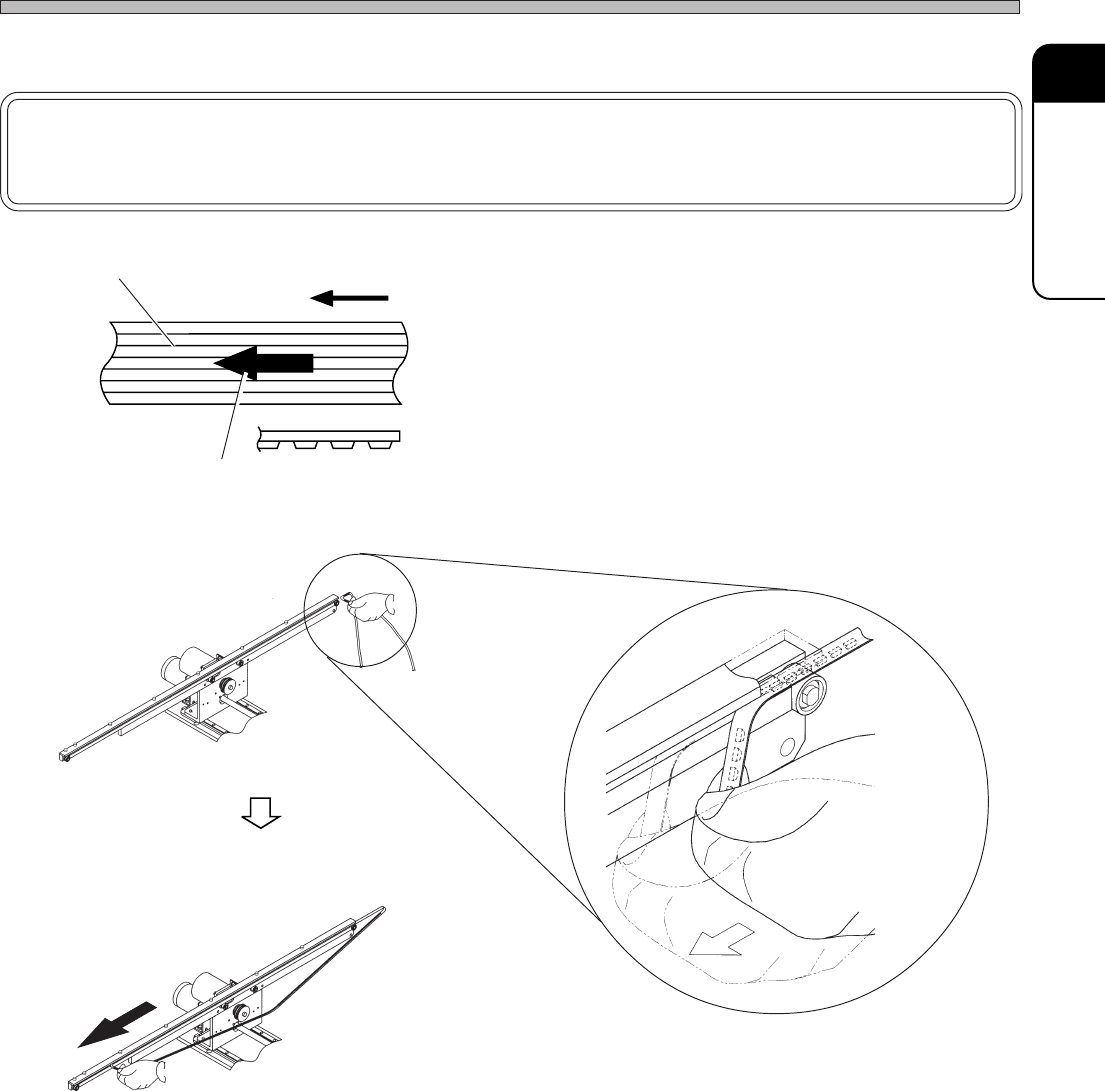 Page 1-119 REGULAR MAINTENANCE 1 Changing the Consumable Parts Every 1500 to 6000 Hours 2 . Setting procedure NOTICE T o prevent the damage of belt, do not bend or press it forcefully in setting. 1 . Check the moving dir…