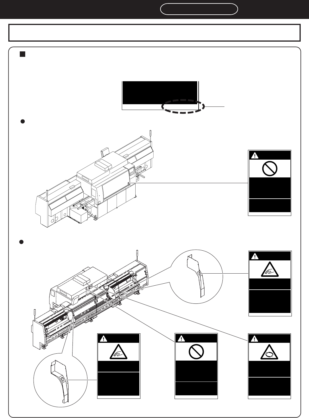 The following warning labels are pasted on this machine. Follow the instructions on each label. If a label