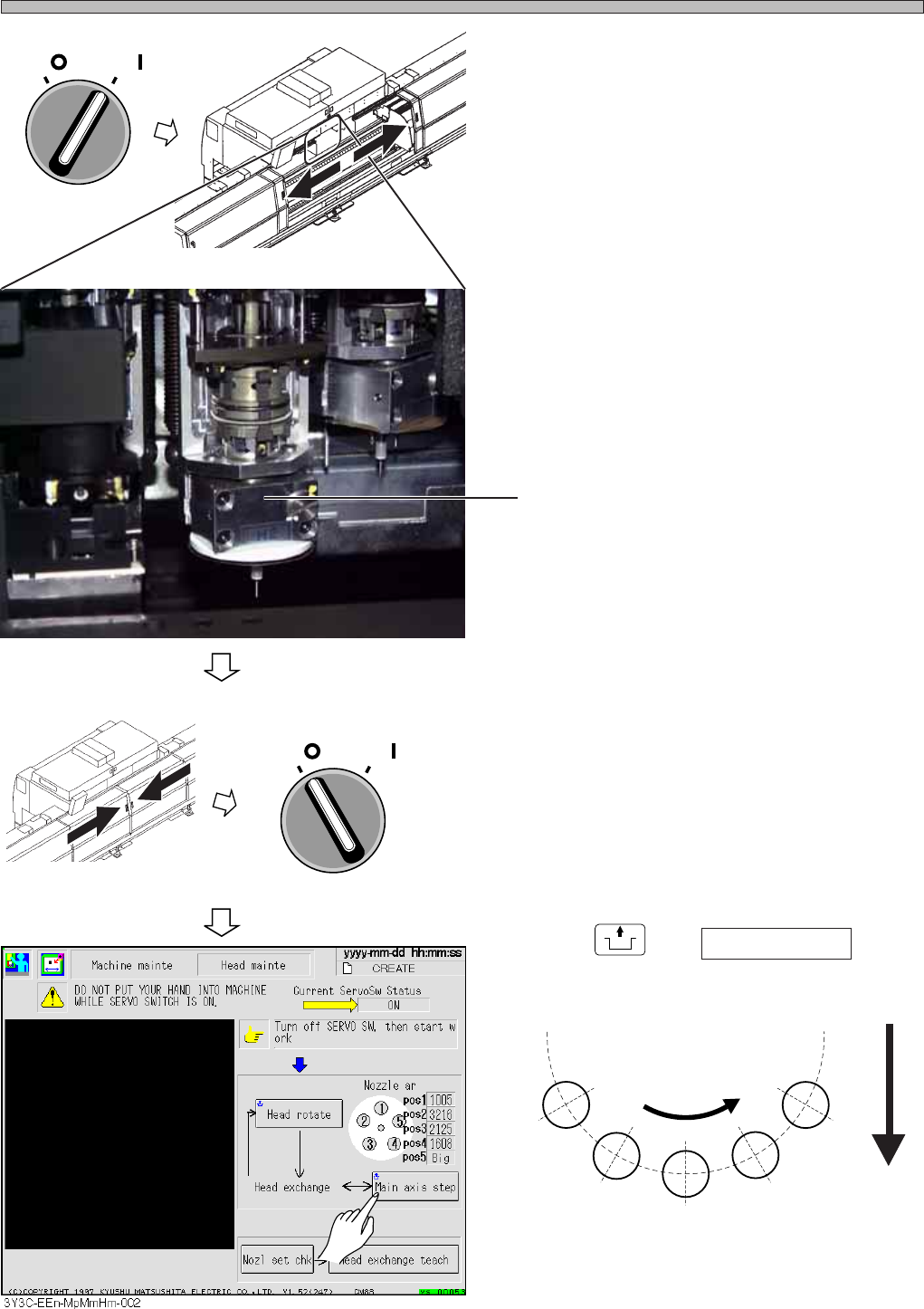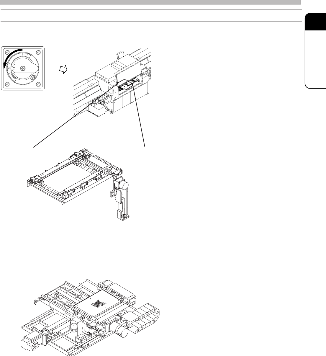 Page 1-23 REGULAR MAINTENANCE 1 Check Every 24 Hours (Routine) 1-3-5 Cleaning the Board Holder and X-Y T able (after Operation) Clean the board holder and X-Y table. 1. T urn off the power . 2. Open the front safety cove…