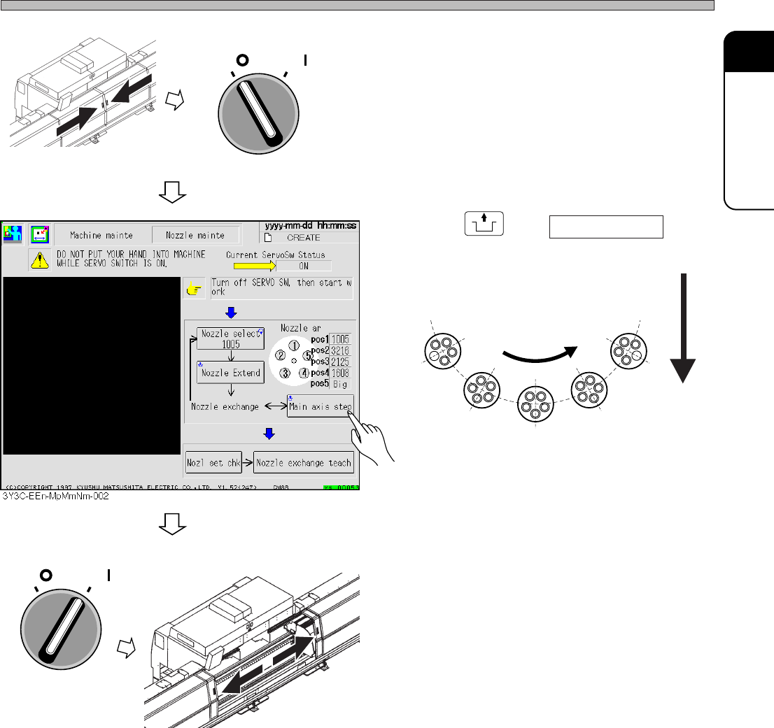 Page 1-32 Check Every 140 Hours (Once a Week) 4. Setting the nozzles 1. Clean the nozzle retraction part of transfer head with a cotton bud. 2. Insert the nozzle to the transfer head retraction part, and moves up and dow…