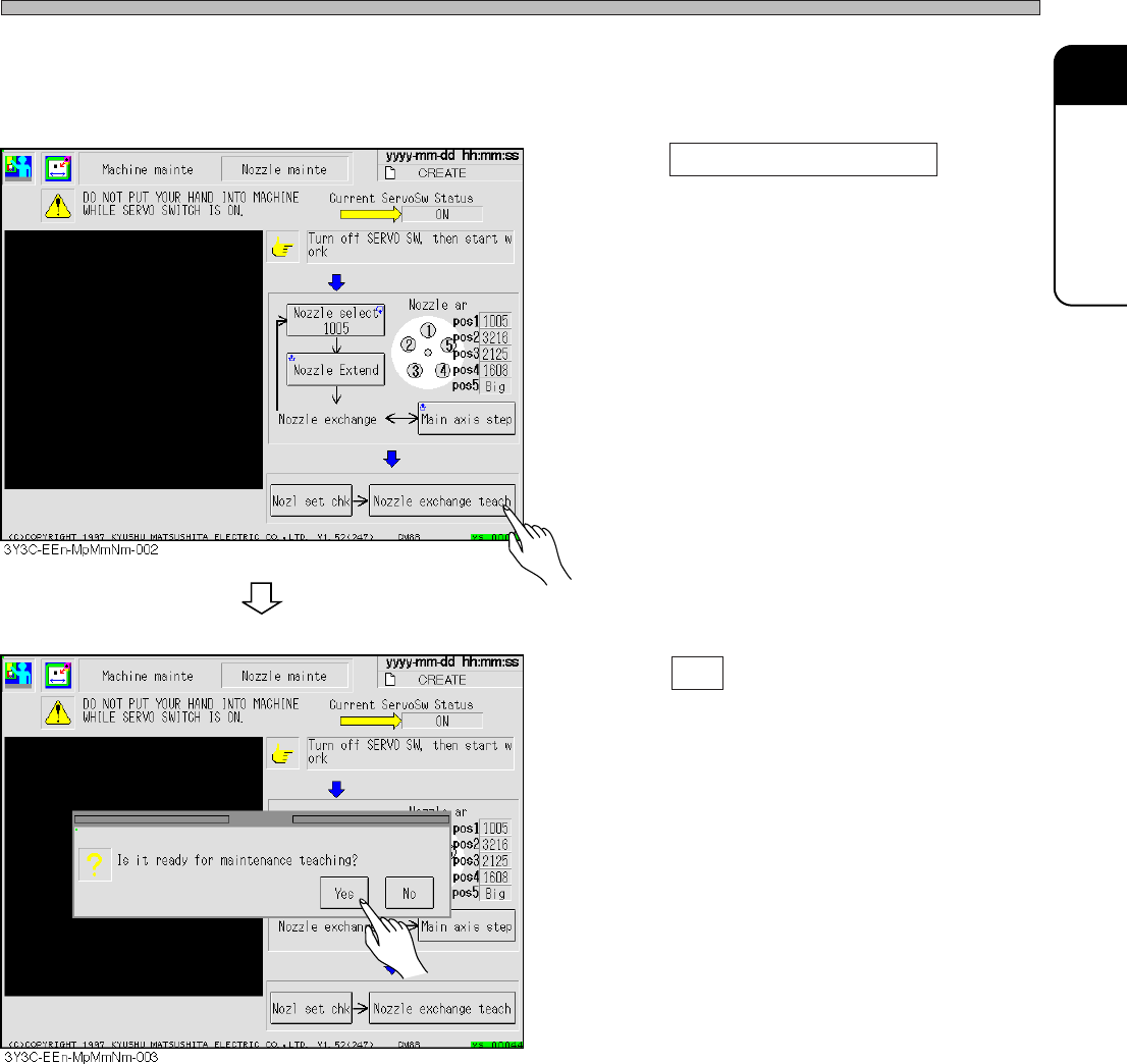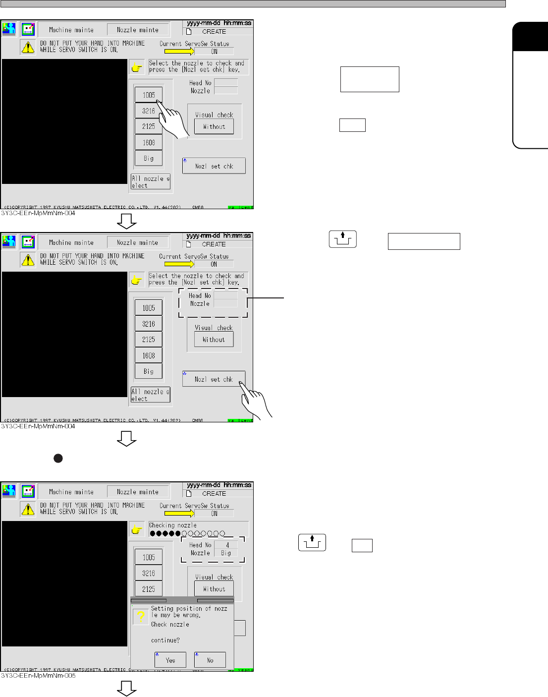 Make sure of carrying out “Nozzle exchange teach” after removing and setting nozzles.