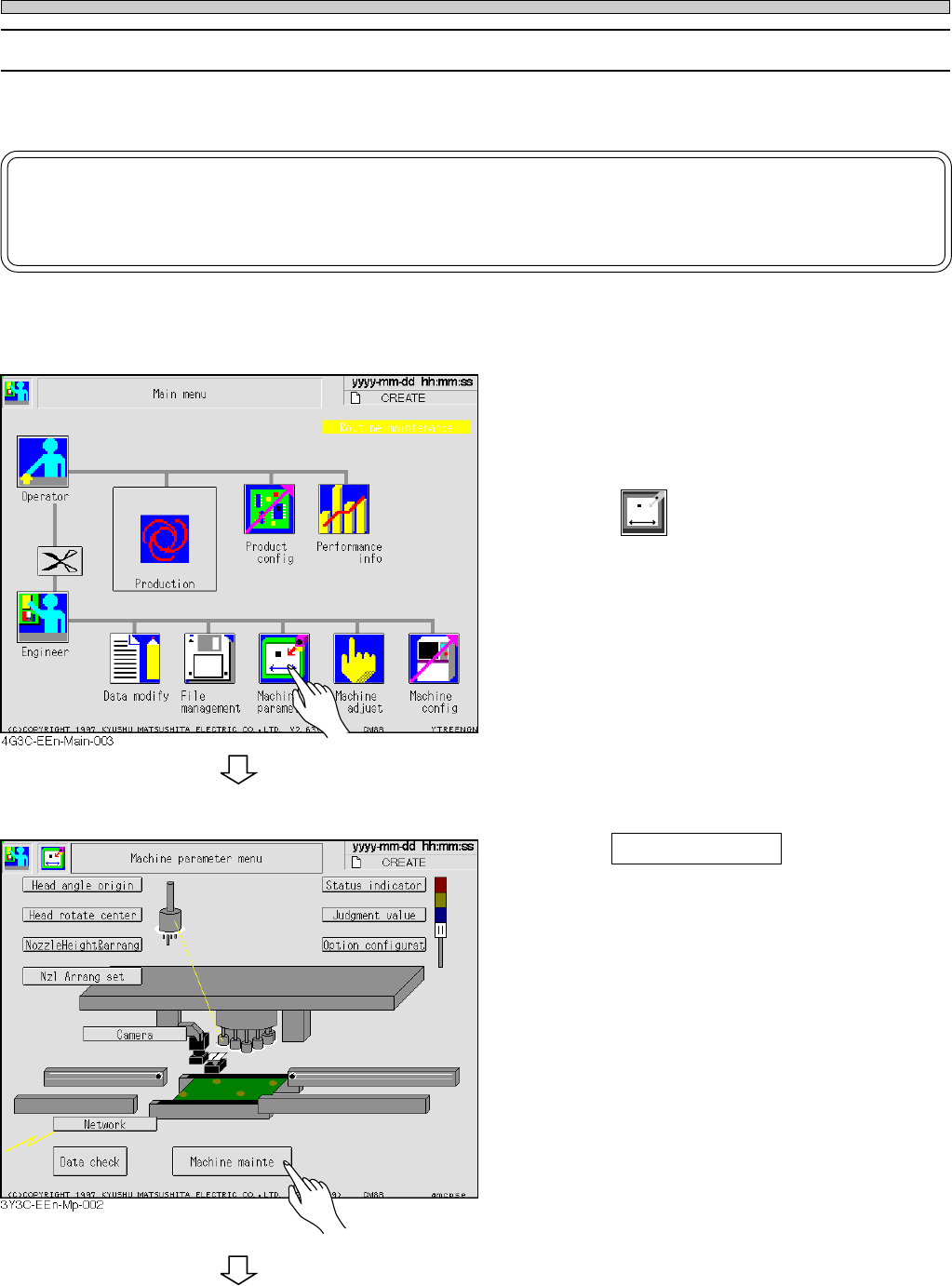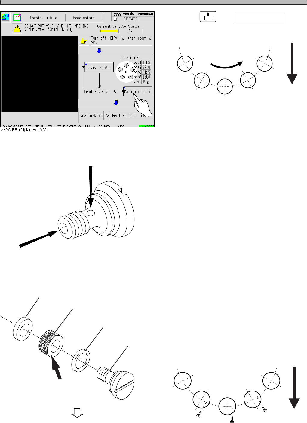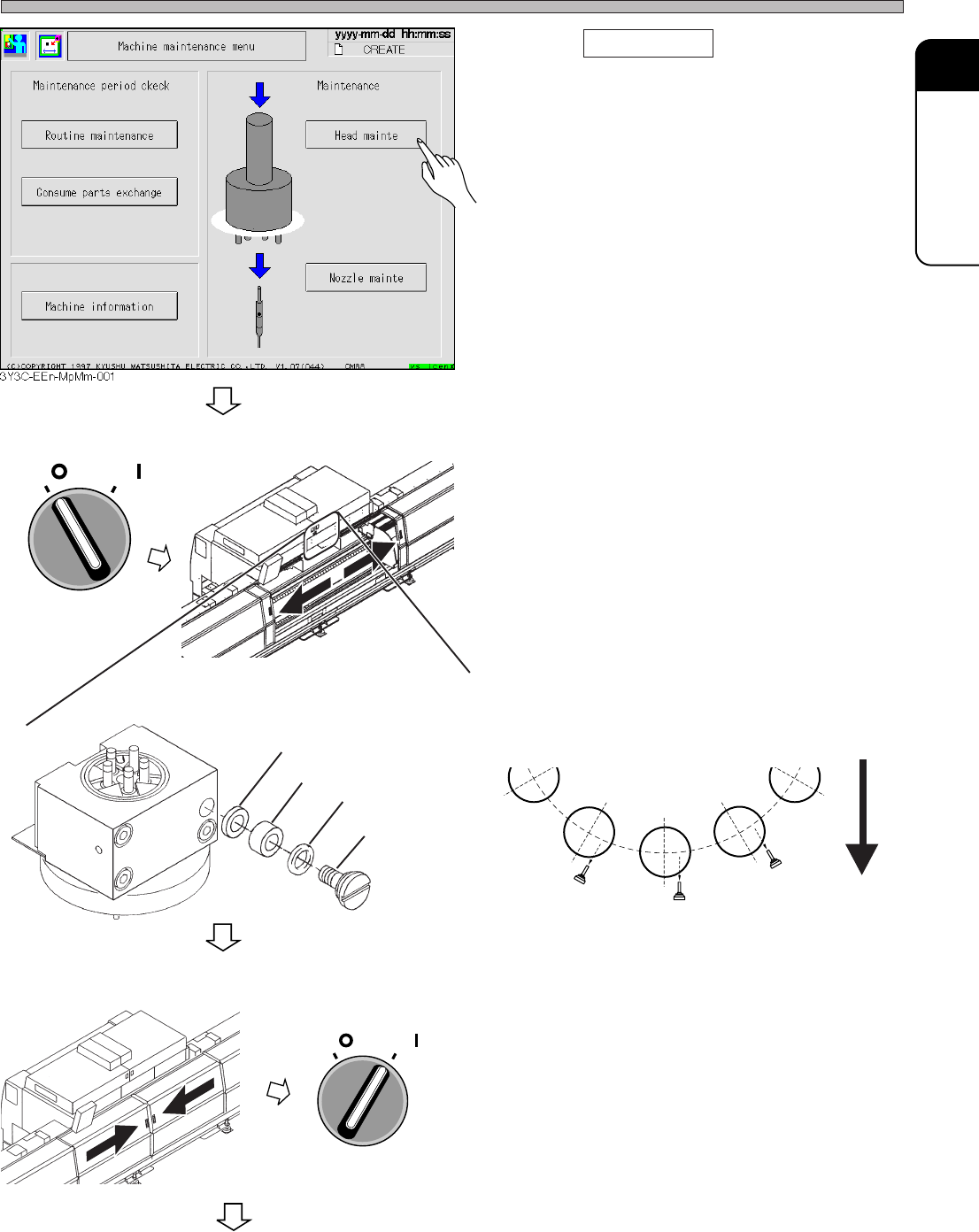 Page 1-53 REGULAR MAINTENANCE 1 Check Every 560 Hours (Once a Month) 3. Press Head mainte . • The “Head maintenance” screen appears. 4. T urn off the servo switch. 5. Open the rear center safety cover . 6. T ake off pins…