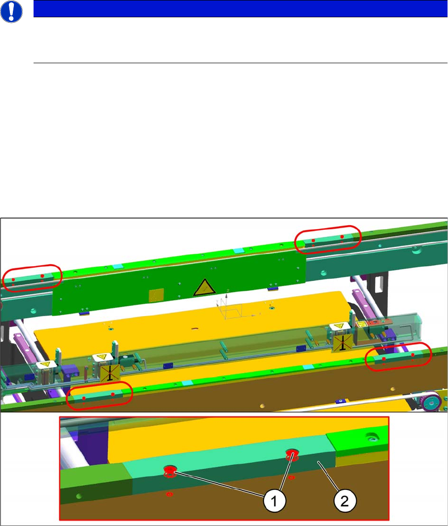 ► Remove the four screws (1) securing lifting table.