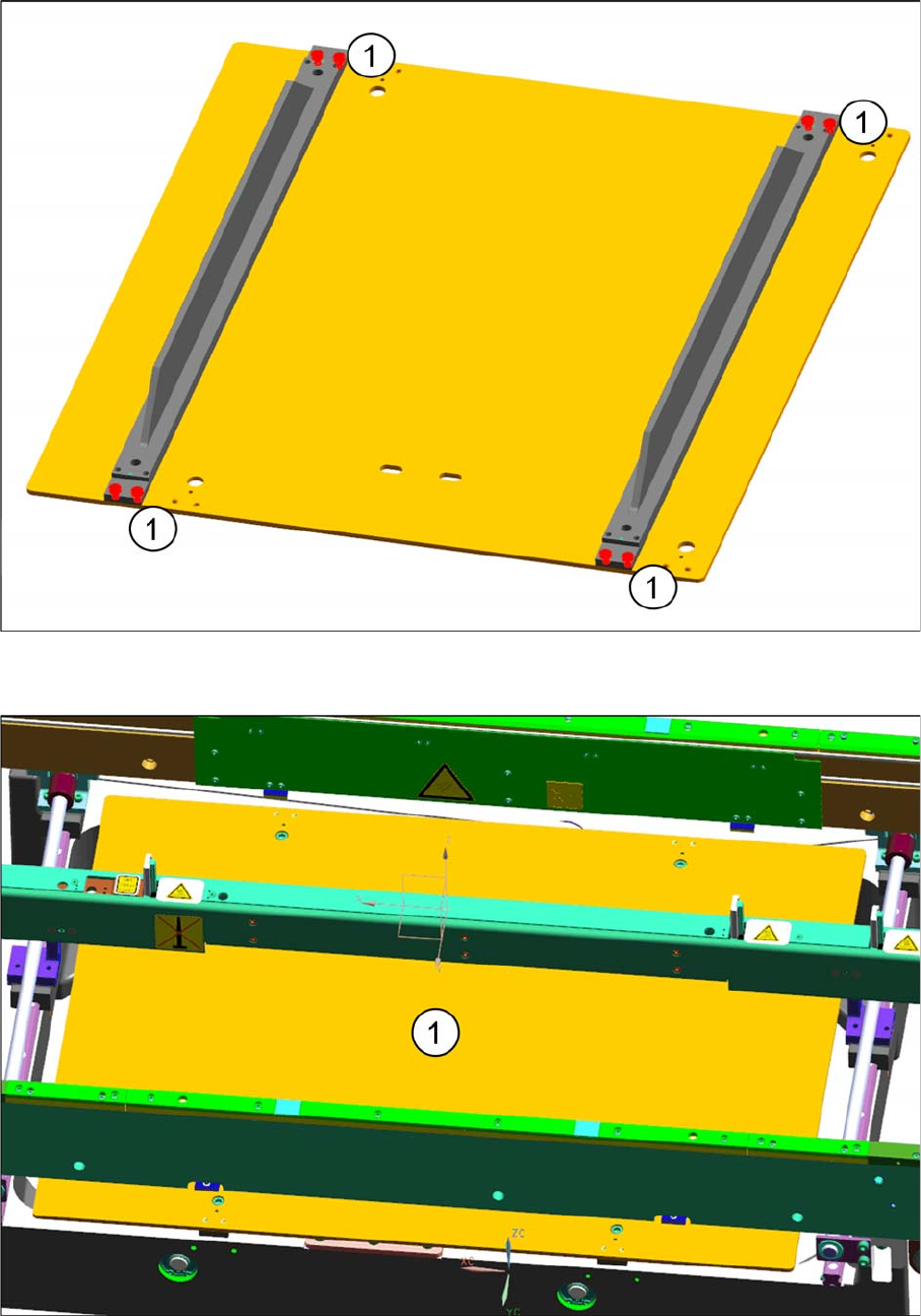 ► Remove the four screws (1) securing lifting table.