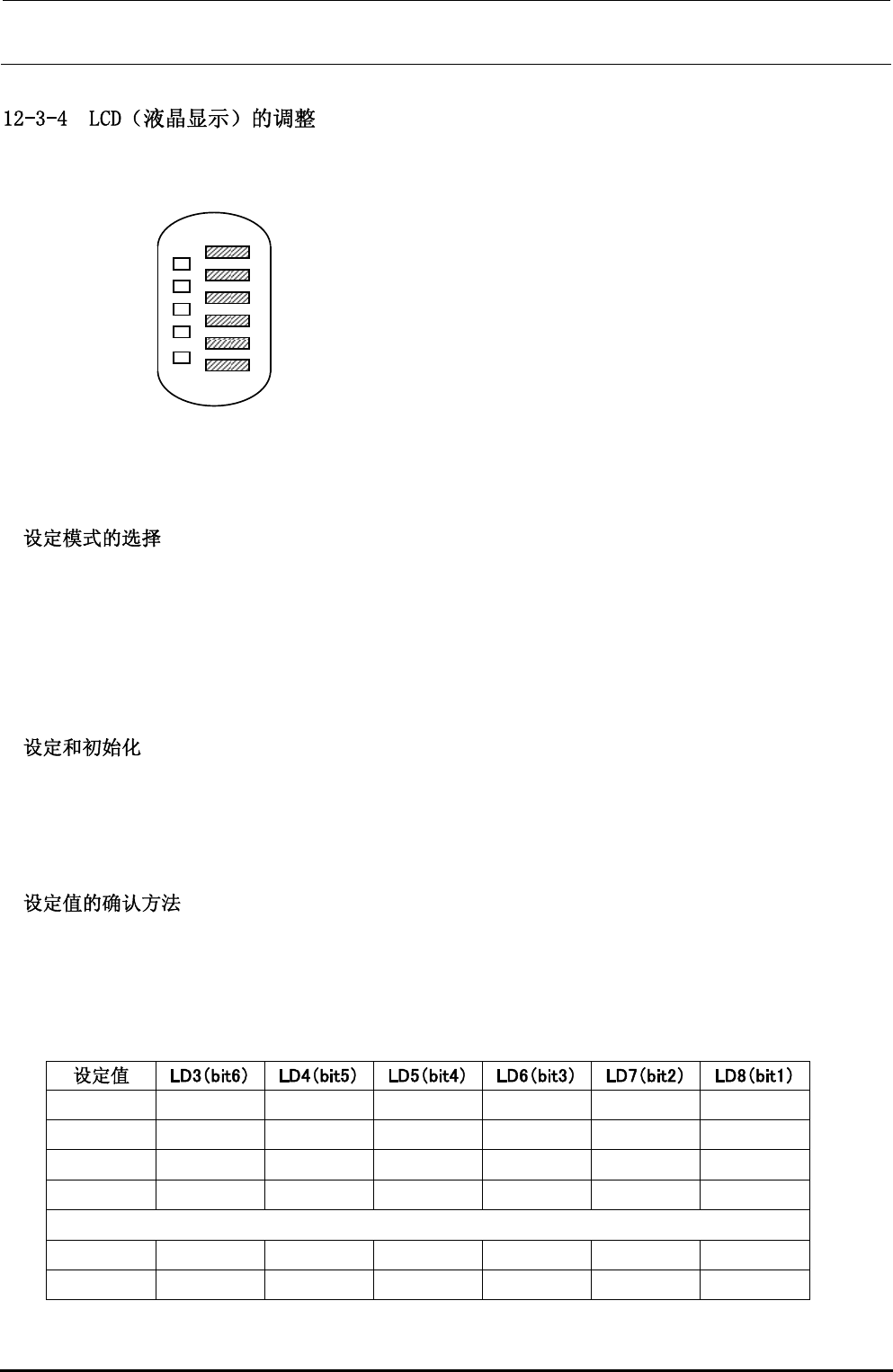 各项目的液晶显示在出厂时均已设定好,更换液晶显示后不需要再调整,但如果显示状态难于看清时,