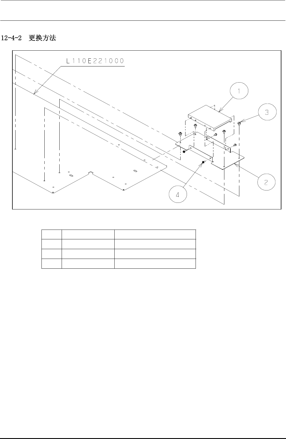 维修调整要领书 12-9 Rev1.0 ① L877E221000 Silicondisk ② L112E321000 硬盘支架 ③ SL4040691SC 带垫片螺钉M4×6 ④ SL4030691SC 带垫片螺钉M3×6 底板