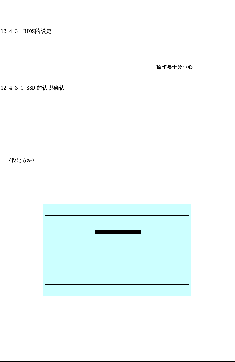 SSD 更换后,请进行 BIOS 的确认。请参照《设定方法》的设定,如发现不同则进行变更。