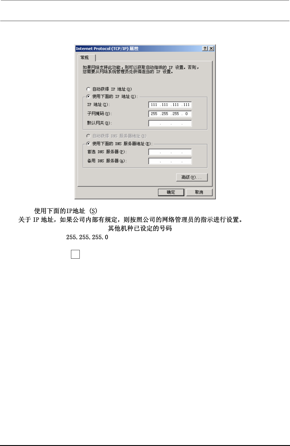 子网掩码处输入[ ]。此外,如果有必要的话,请按照公司内网络管理员的指示,对