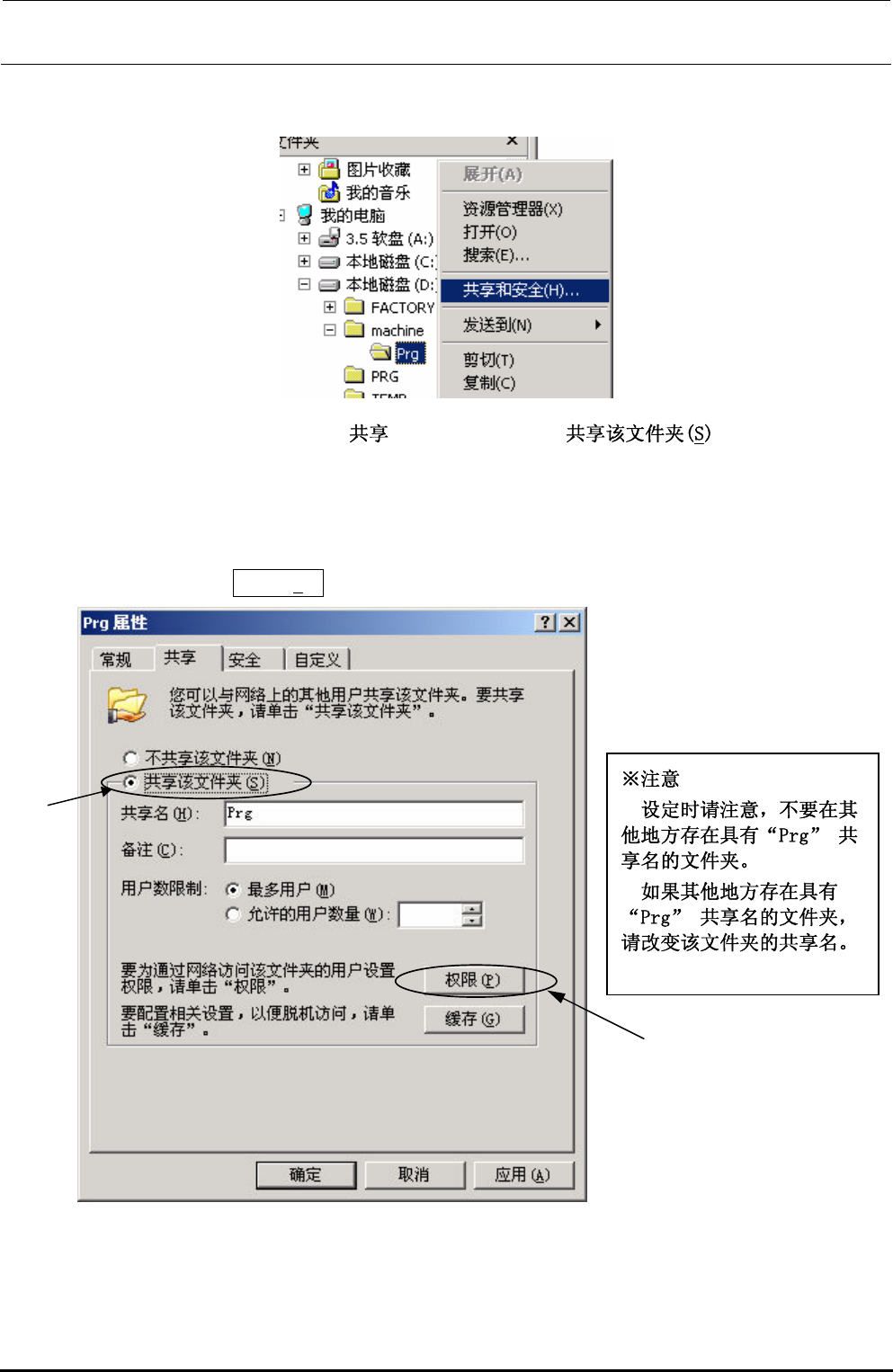 · 如共享文件夹名尚不是“Prg”,请改为“Prg”。