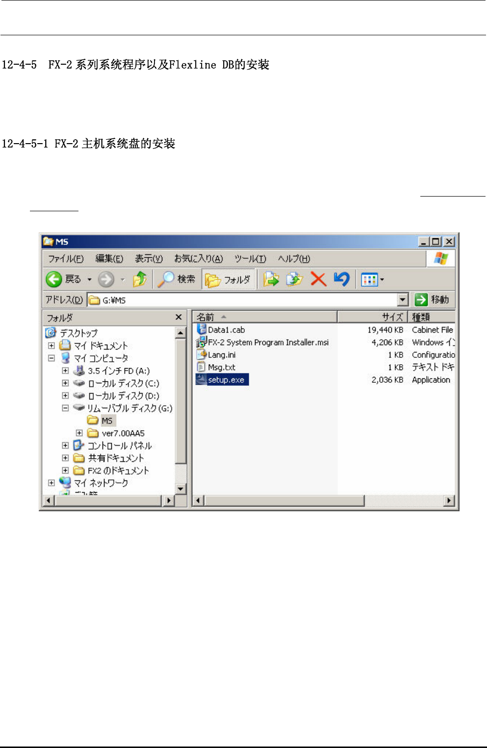2)请插入存有FX-2 系统程序安装文件的USB存储器等,从第 1)步所选择的浏览器中选择(双击)