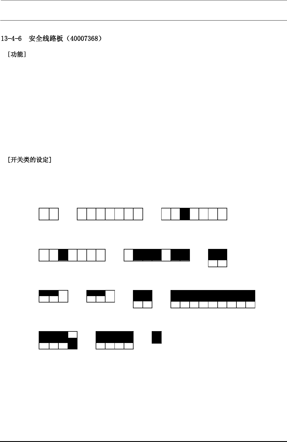 在控制装置中使用的安全线路板组中,安装有跨接。参照下表,进行线路板跨接的设定。(在途色部