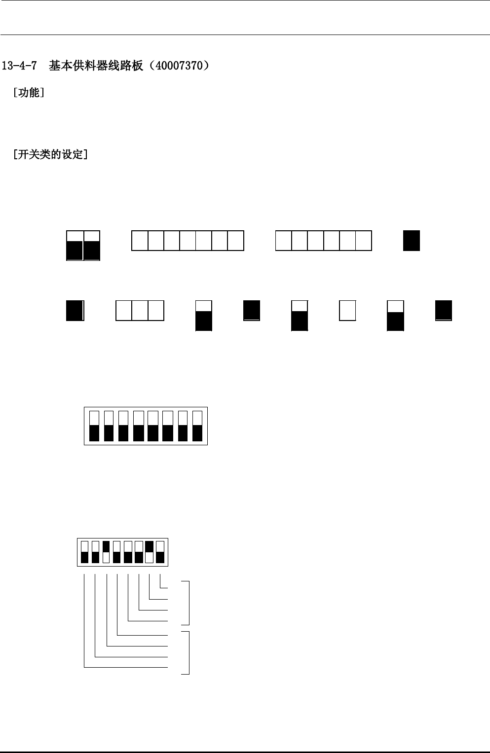 在控制装置中使用的基本供料器线路板组中,安装有跨接。参照下表,进行线路板跨接的设定。(在