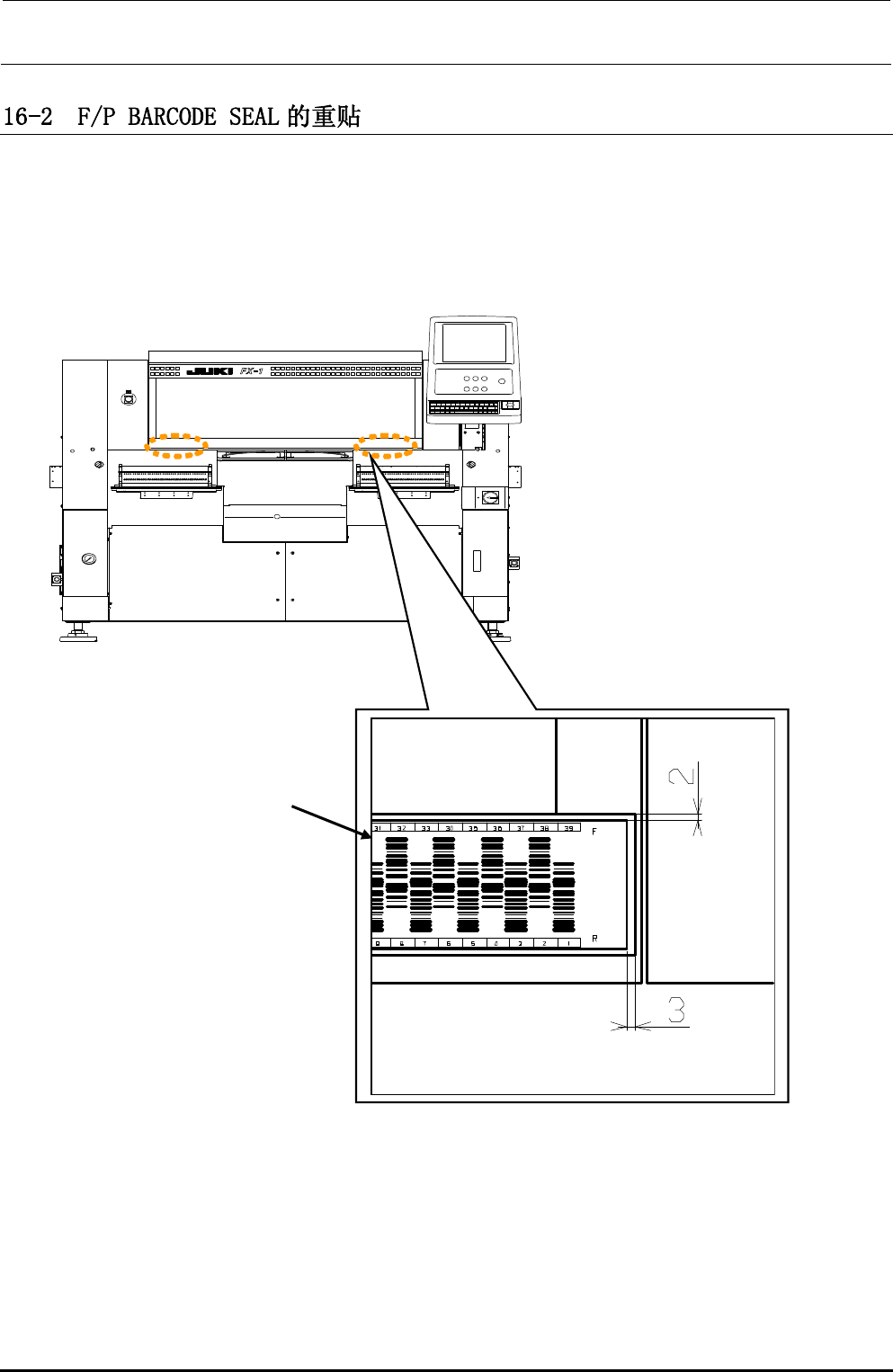 3)把 F/PBARCODESEAL①贴在下图所示的尺寸位置上。(前后左右相同)