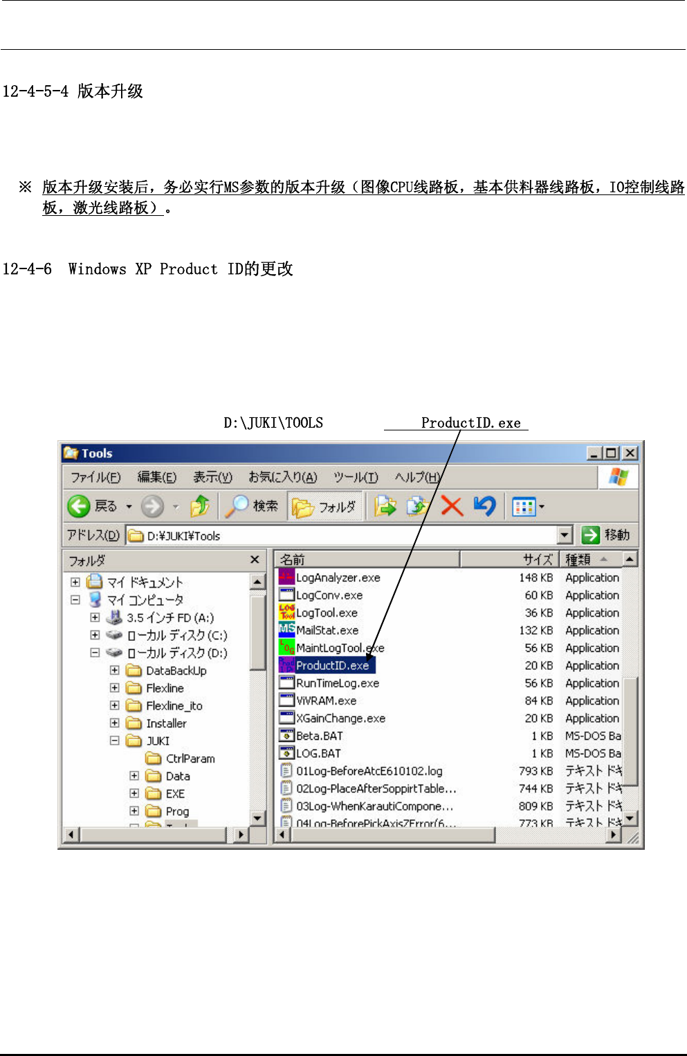 维修调整要领书 12-32 Rev1.0 3) 此时出现 Product ID 画面,请 根据装置的 Certificate of Authenticity 输入 Product ID,但要 去掉破折号(-)。 ※ WindowsXP 的 ProductID 记载在主 机右侧信号灯附近的许可标签(上图)上。 4) 选择[OK],弹出确认保存的对话框,选择 [OK]。