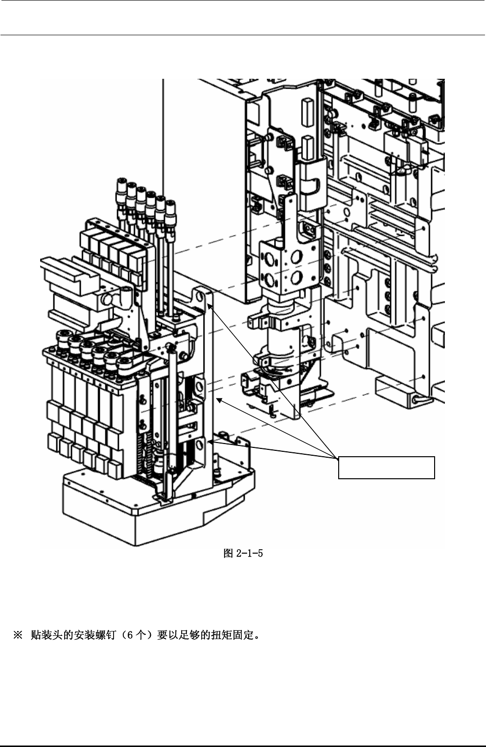 6)为使贴装头不掉下来,请在拆带垫片内六角螺钉(6 枚)时按住贴装头。