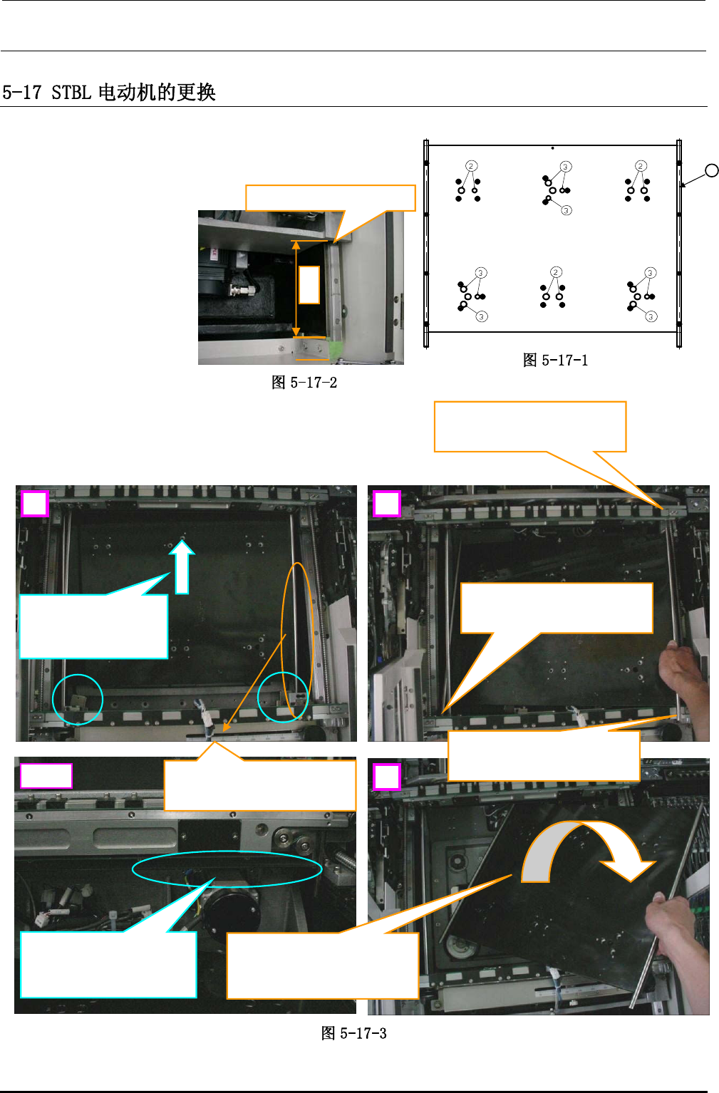 2)请卸下用于固定支撑台的螺栓②、③,共计 15 枚,取
