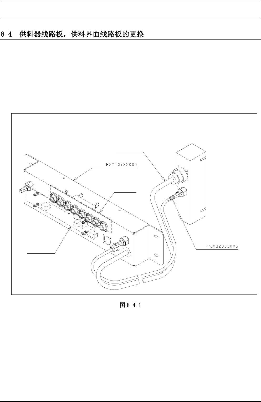 维修调整要领书 8-5 Rev1.0 1) 从主机上拔下供料器连接导线与空 气管接头。 2) 卸下安装螺栓,并从主机上卸下插 头支架。 3) 卸下与供料器线路板或者供料界面 线路板相连的插头(导线)。 4) 卸下供料线路板的 8 枚螺栓及供料 界面线路板的 4 个螺母,更换成新的。 5) 按照相反的顺序进行安装。 连接导线 供料界面线路板…