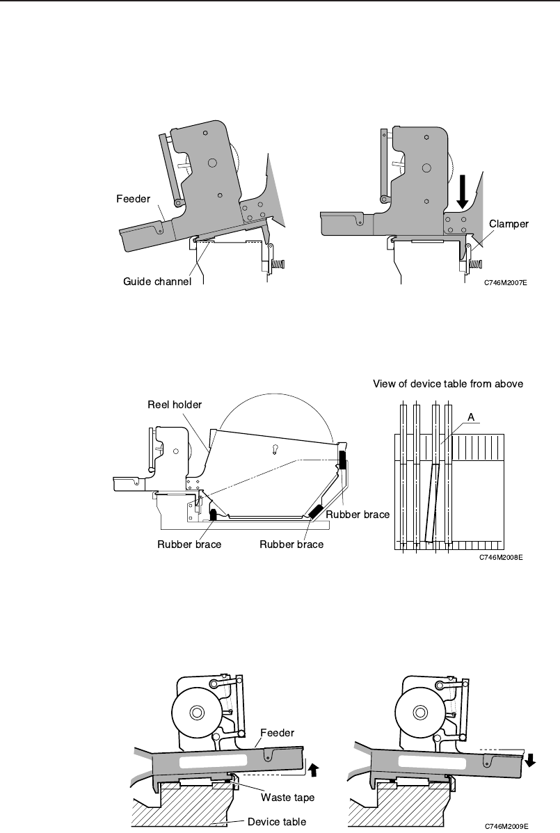 4. Set the feeder on the pallet. Be sure the guide ridge on the bottom of the feeder fits properly into the slot on the pallet. Push the feeder forward and then push down to clamp the feeder in place. In the case of 13, …