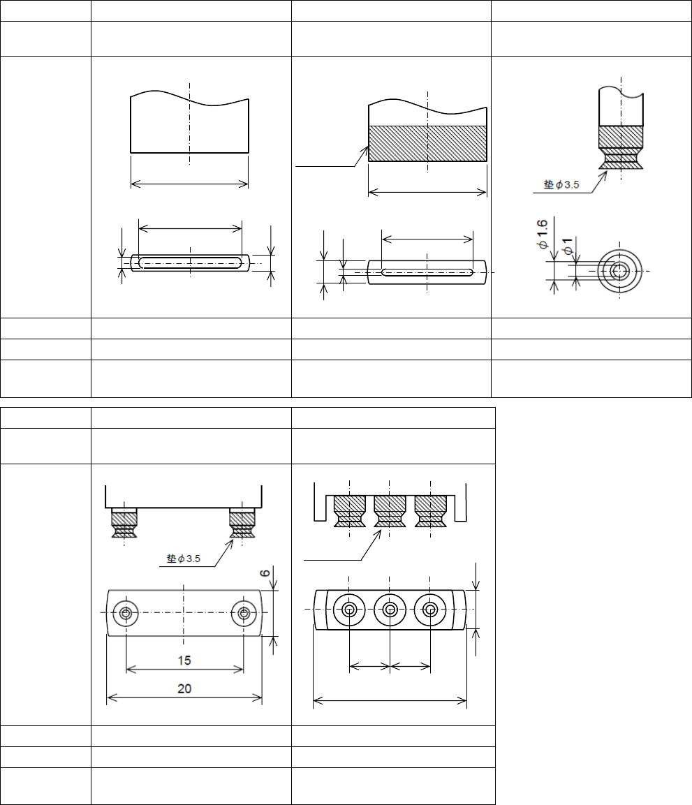 3 吸嘴贴装头能够吸着的元件尺寸如下。(●: 能够吸着,○: 不能吸着)