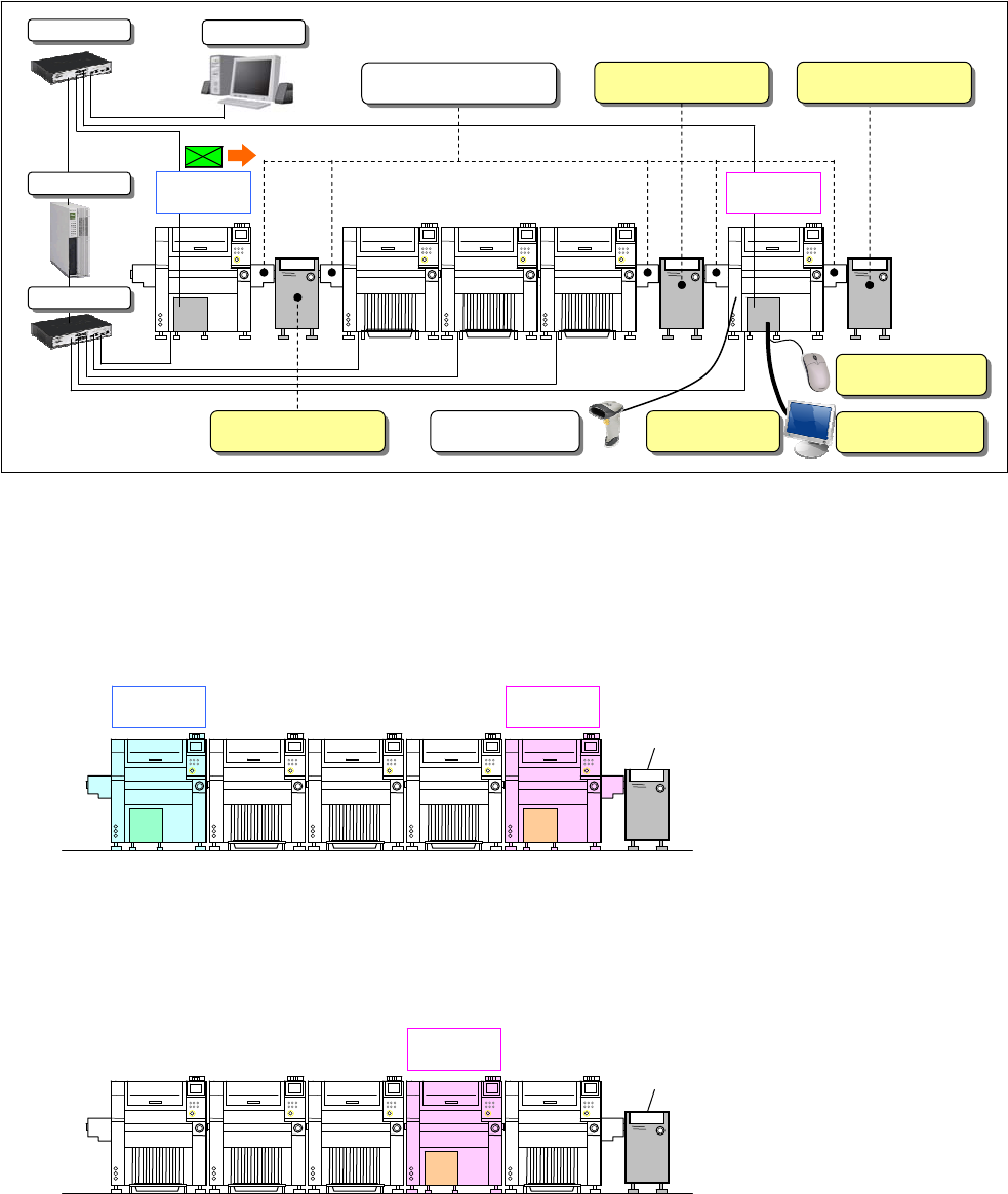 NPM-W 2014.0303 - 45 - ■ 生产线构成例子 ( 传送方向 : 左 → 右 ) NPM-W 的生产线构成以及延长传送带等 的配置如下。 为了确保传送开口部的安全,在生产 线最前段以及最后端的 NPM-W 需要延长传送带。 NPM-W 之间设置延长传送带时,请选择 上游延长传送带。 1. 只连接 NPM-W 的生产线时 ( 连接台数 : 15 台以下 ) 2. 连接 NPM-W 以外的设备的混合生产线时 与 NPM-W…