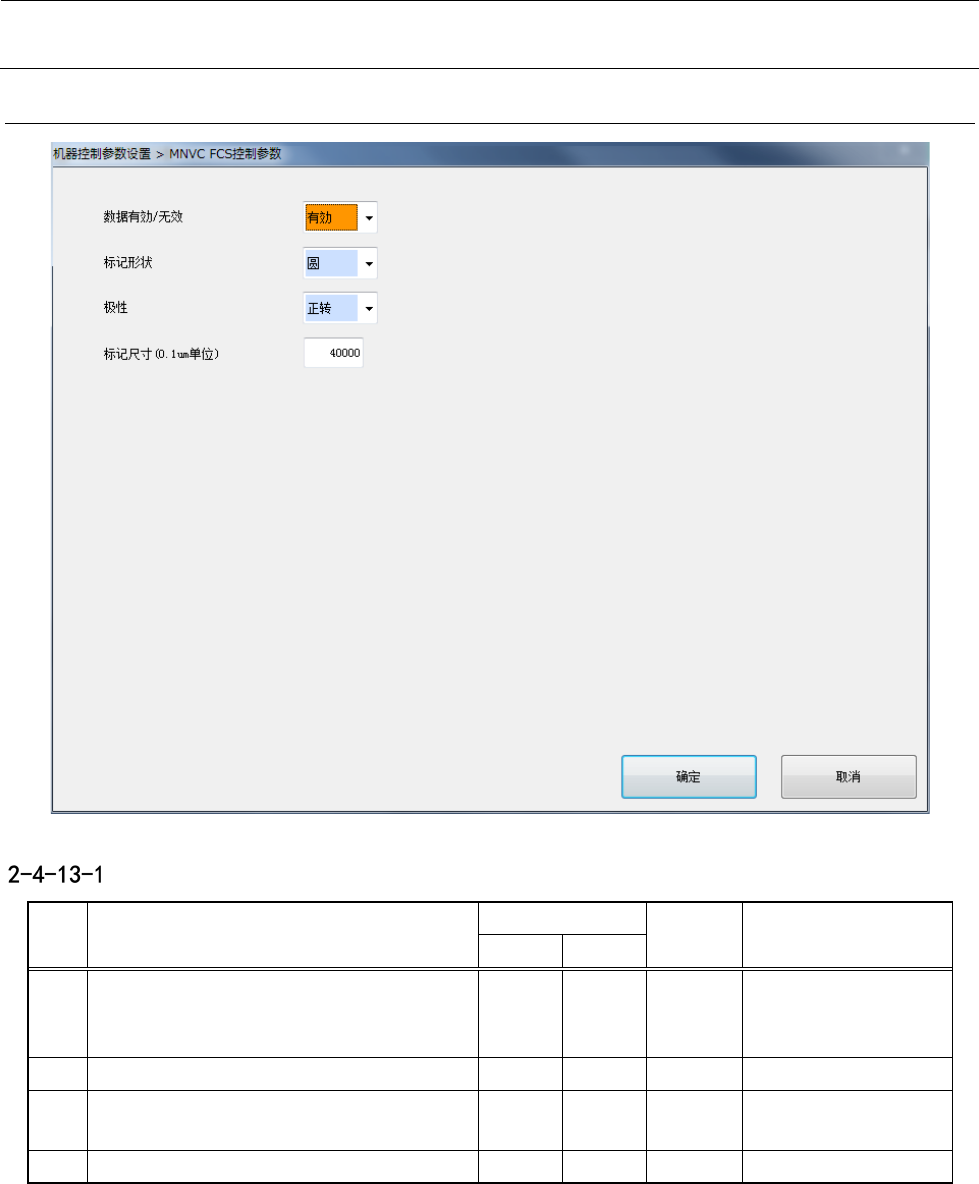 机器控制参数 2- 108 2-4-1 2 MNVC 元件控制 设定项目 No. 项目 输入范围 单位 备考 最小值 最大值 1 数据有效/无效 0 1 0 :无效 1 :有效(默认) ※ 2 纵长姿势控制长边尺寸 默认: 2 00100 3 适用的最大长边尺寸 默认: 265099 4 最大对角尺寸 默认: 307000 5 适用的最大长边尺寸(扩展) 默认: 335099 6 最大对角尺寸(扩展) 默认: 4 73800 ※ 在“数…