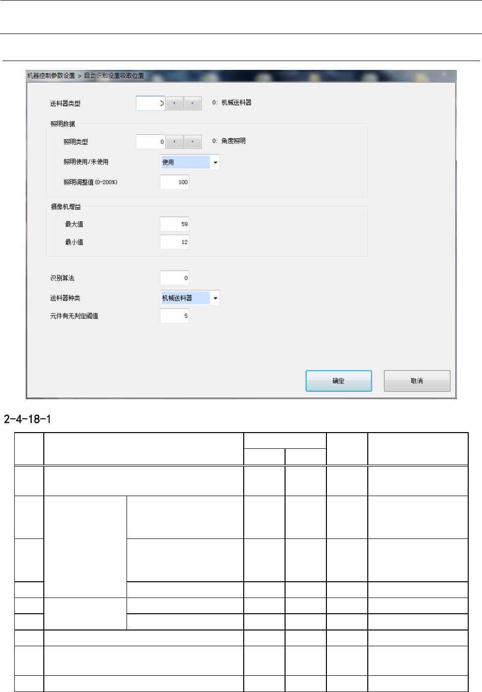 机器控制参数 2- 113 2-4-1 7 设置焊锡偏移校正 设定项目 No. 项目 输入范围 单位 备考 最小值 最大值 1 对比度图案 0 19 2 最大值 3 最小值